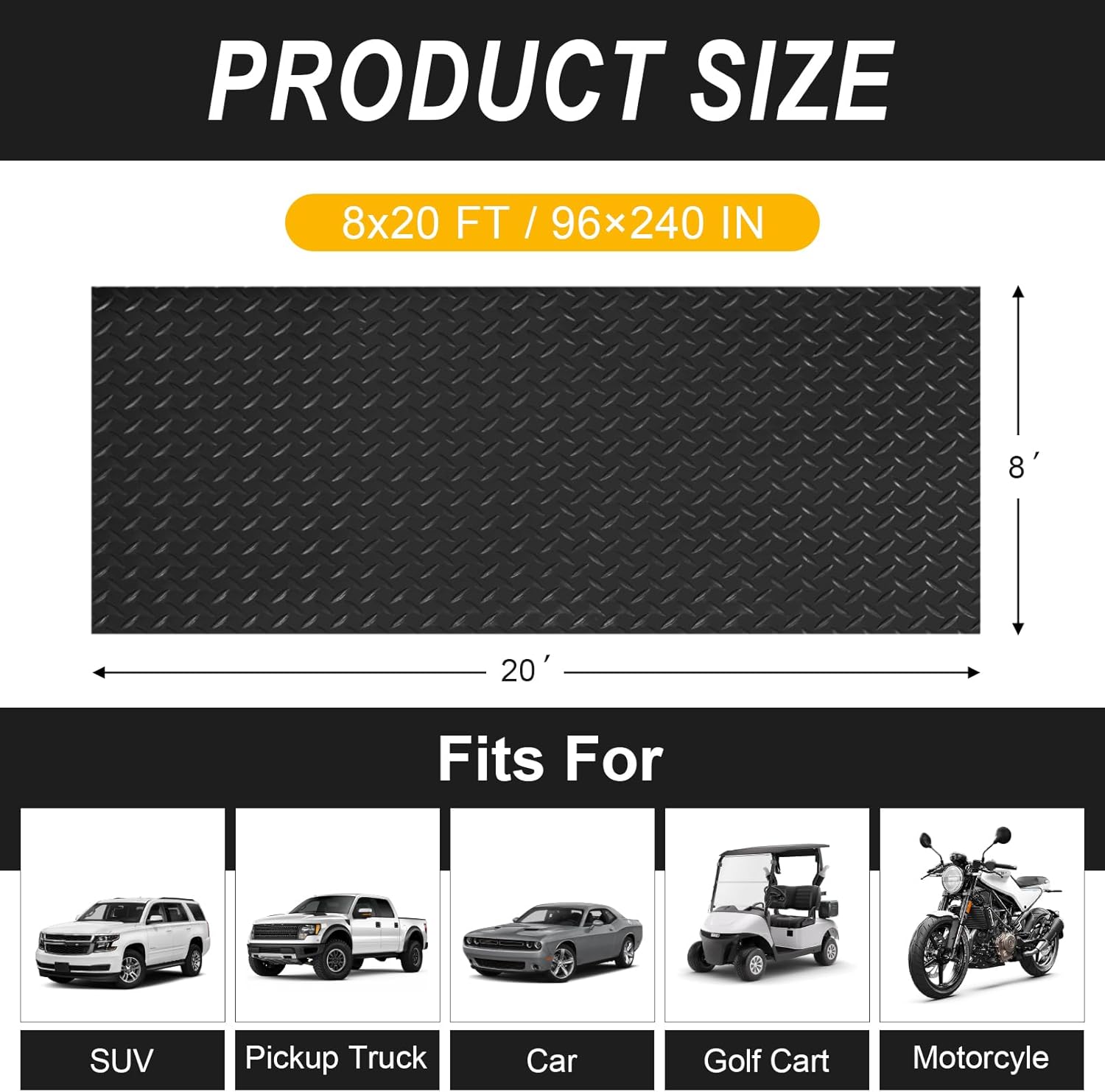 - Generous Dimensions: Boasting a spacious 8x20ft coverage, totaling 160 square feet, this floor mat is designed to accommodate a variety of garage spaces. The ample size eliminates concerns about mismatched dimensions during installation.