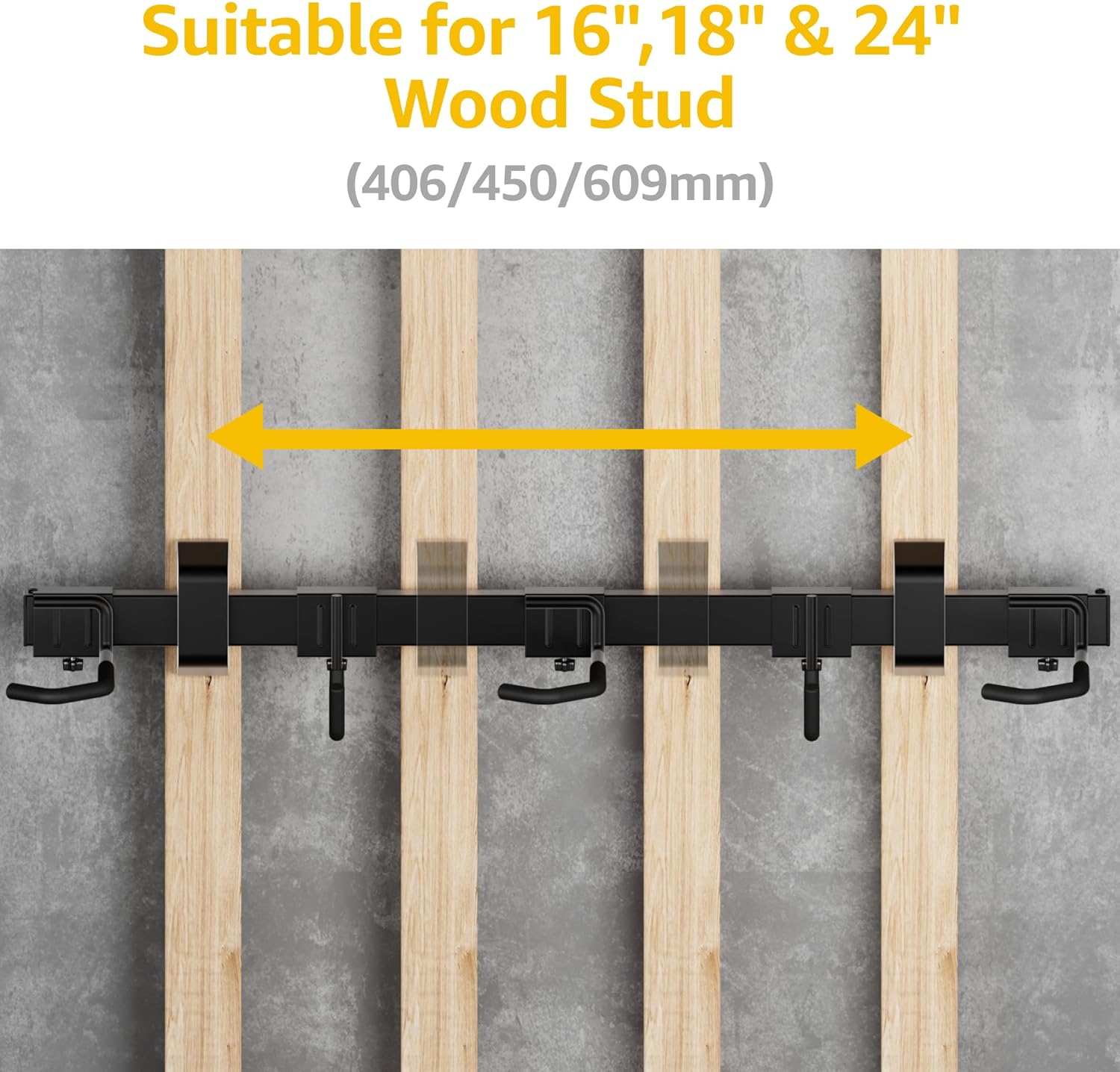 - 【EASY TO INSTALL】Installation takes just a few minutes, complete with detailed installation instructions and high-quality installation hardware. Our wall bike rack is suitable for standard 16"/18"/24" wall stud spacing. It's recommended to install the bike storage rack on a stud or solid wall; wood, brick, concrete wall, etc.