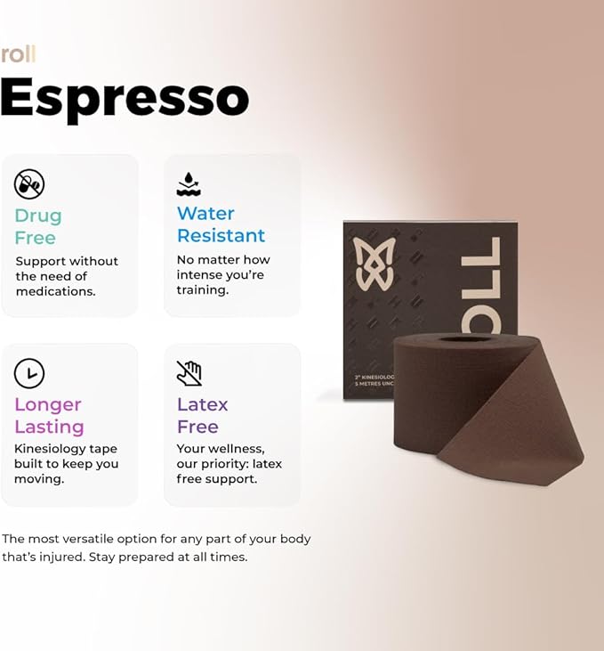 Spidertech Kinesiology Atheletic Tape 2 Inch Rolls (5 Metres Uncut) (Espresso)