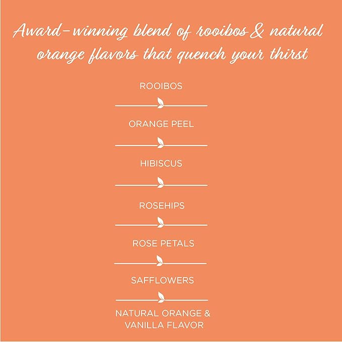 - Award-Winning Herbal Bliss: Indulge in our Blood Orange Smoothie tea, a delightful blend of naturally caffeine-free South African red rooibos, orange, and creamy vanilla. Winner of the Global Tea Championship, this herbal tea is a true sensation!