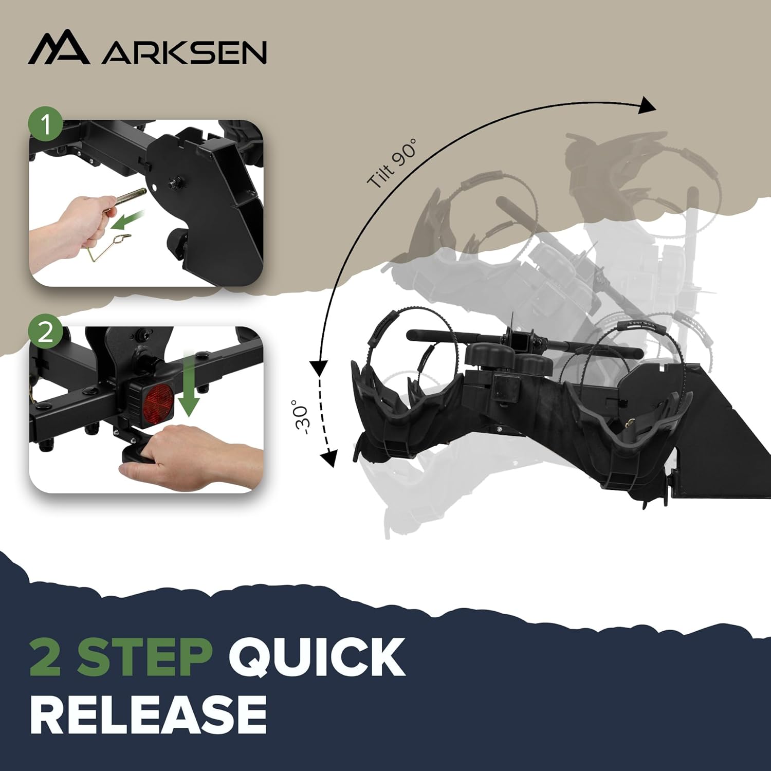 Arksen Electric Bike Rack Hitch, Foldable Quick Release Smart Tilting 2 Ebike Rack Platform Style Carrier w/Car Lock for Up to 5.5" Fat Tires for Car, SUV, Trucks - 170 lbs Heavy Weight Capacity