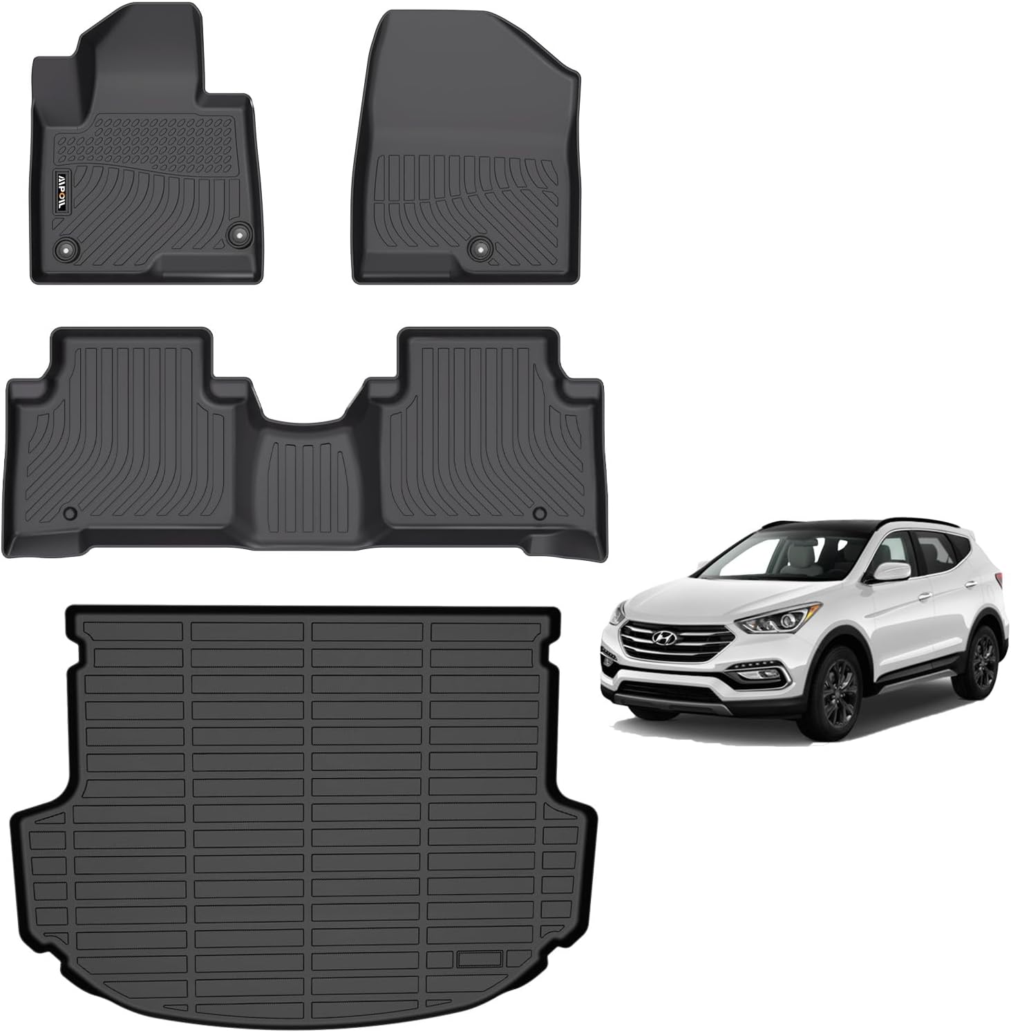AIPOIL® Floor Mats & Cargo Liner Set for 2013-2018 Hyundai Santa FE Sport (Only for Sport 5 Seats) All Weather Protection TPE Anti-Slip Automotive Full Set Custom Car Mats Accessories - Black