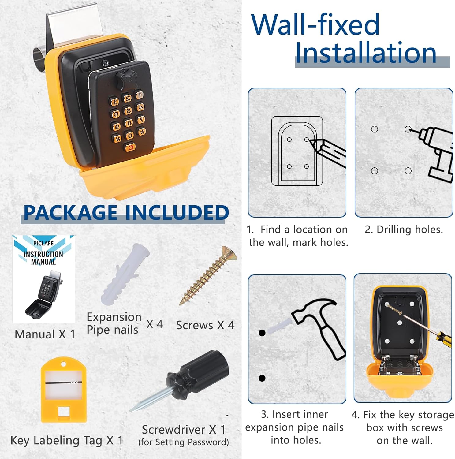 - 【Easy Installation and Use】Our key lock box comes with a back hook and screws, so you can hang it on the car window or fix on the wall. It has a 12-digital password keypad featuring thousands of combinations for maximum security. (Note: 1.Please take a photo record or record with a note after setting a new password, forgetting the password will make it unusable. 2.It's not suitable for vehicles with keyless access as the lock box doesn't block the signal. If you would like to try, you could try to line the inside of the box with tin foil).