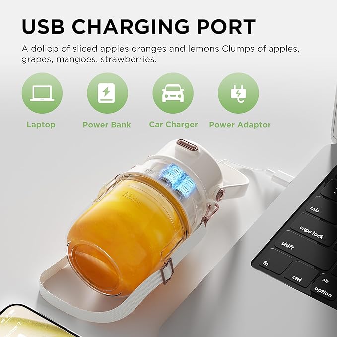 - [USB Type-C Charging for Convenience and Speed] To provide a more convenient user experience, we adopt Type-C charging. Not only does it charge faster, but it's also more compatible. You can charge the blender anytime, anywhere, using a computer, power bank, or charger, ensuring the blender for shakes and smoothies always has sufficient power to meet your needs.
