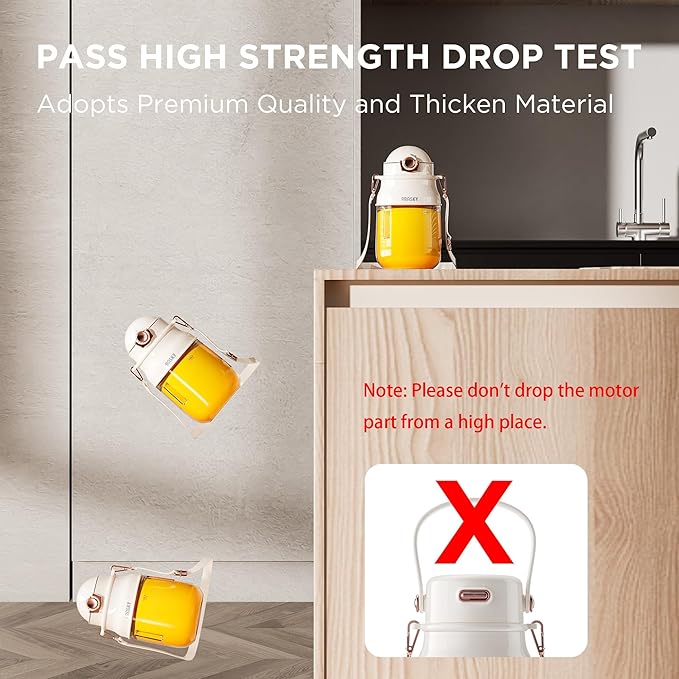 - [Compact, Safe, and Portable Design] The personal blender is designed to be compact and lightweight, making it very beautiful. Featured a smart safety lock, if the cup tilts or the lid isn't tightly screwed on, the blender's motor will stop automatically. Extremely safe. With a shoulder strap, you can carry the portable blender anywhere, which is very convenient and rare.