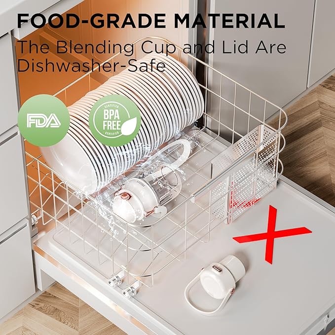 - [BPA-Free and Easy to Clean] Our blender is made from BPA-free materials to ensure healthy drinking. Its easy-to-disassemble and clean design make maintenance a breeze. The blade assembly can be rinsed directly under the faucet, and the container can be washed in the dishwasher. (Do not immerse the motor in water)
