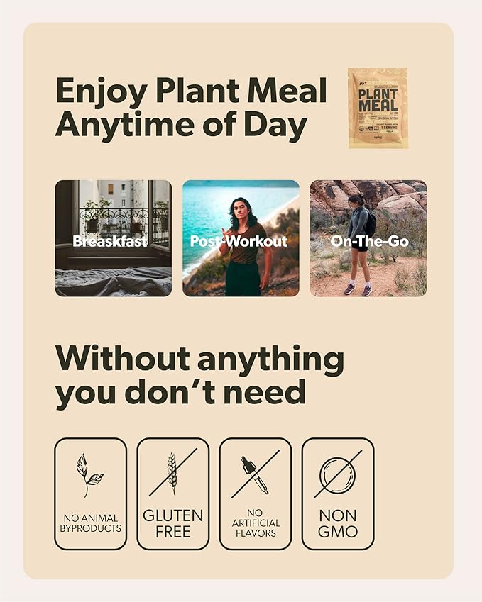 - Perfect for on-the-go: Whether you're rushing out the door in the morning, or if your in need of a quick and easy meal, Plant Meal has got you covered. Simply mix with ice-cold water or your favorite milk for a convenient protein shake and meal replacement option. Blend it into your favorite smoothies for added creaminess, or get creative and incorporate it into your favorite baked goods for a nutritious twist.