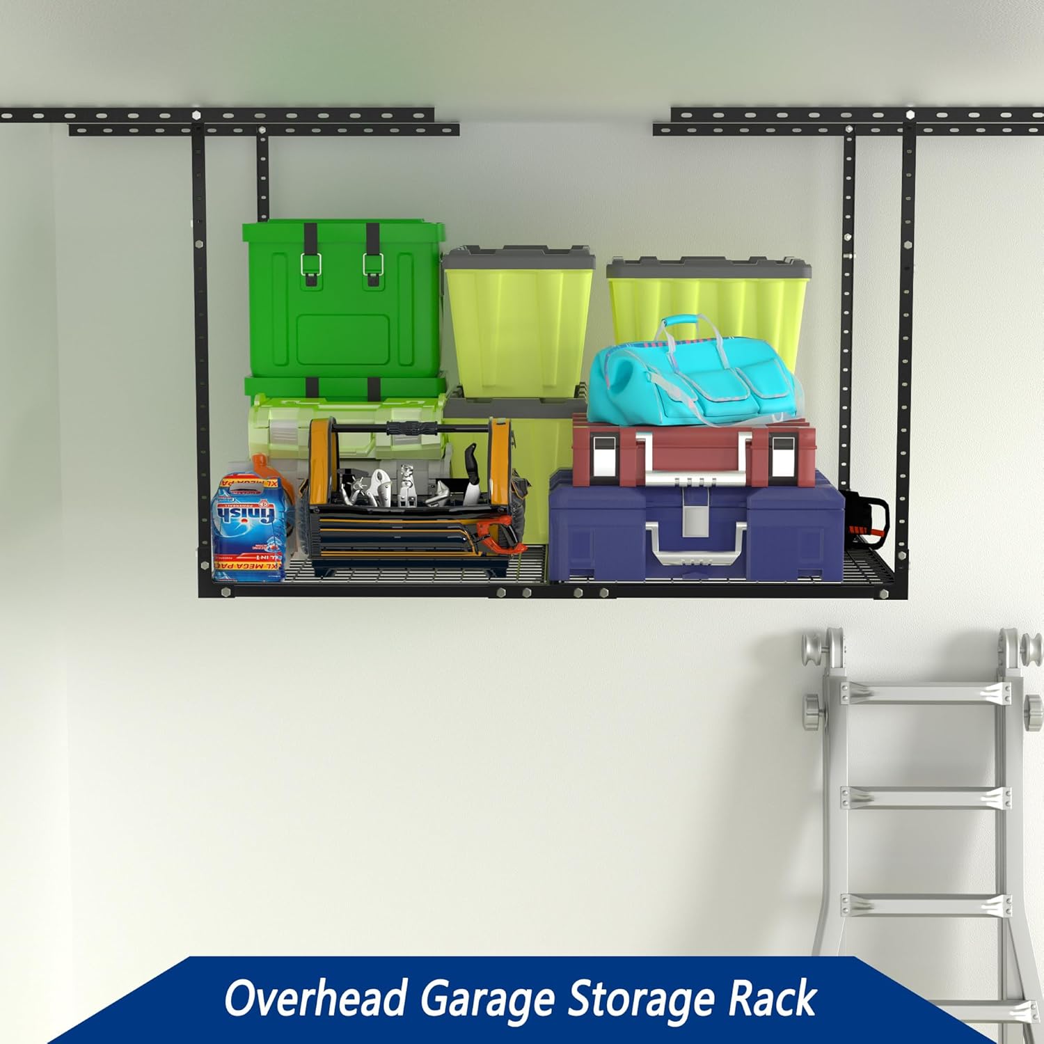 - MORE SPACE: Meet your storage needs with a ceiling mounted garage storage system for storing unused items. This hanging storage system is a great space saver, providing you with more storage space and better organization.