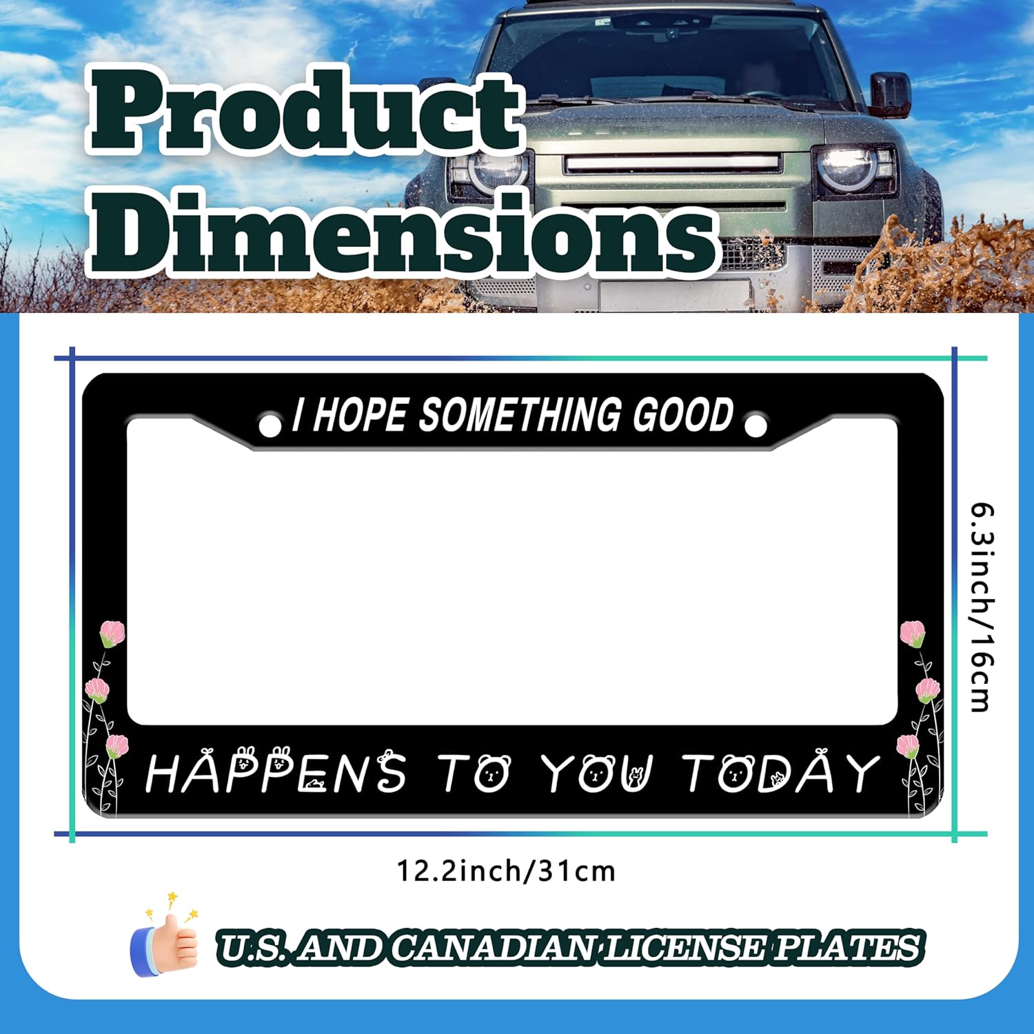 - 6.3 X 12.2 INCHES: Suitable for most standard size U.S. and Canadian license plates, can be applied to front or rear license plates, universal style. Add points to the beauty of your car!