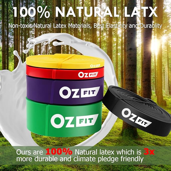 - 【Natural and Durable】Made from 100% natural latex sourced from Malaysia, OZFIT resistance bands are soft, odorless, and highly durable. These high-quality resistance bands maintain excellent elasticity, even after years of use in your pull-up assistance, glute workout, and strength training routines. Perfect for long-term use, they provide reliable support for all your workout needs