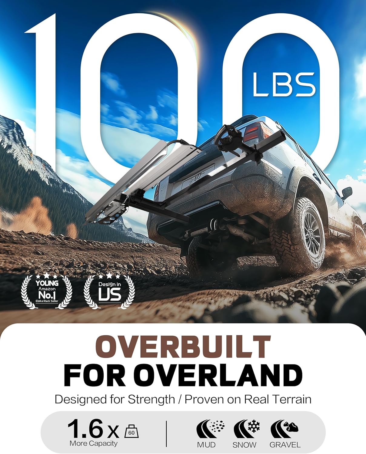 - DURABLE & SAFE: Young Electric bike rack is constructed with reinforced steel and aluminum which makes it durable and powerful enough to carry 1 bikes weighing 100 lbs. Comes with 1-arm fix, patent secure wheel cradles and anti-wobble structure, that secure your E-bikes in place without swaying and knocking against vehicle.