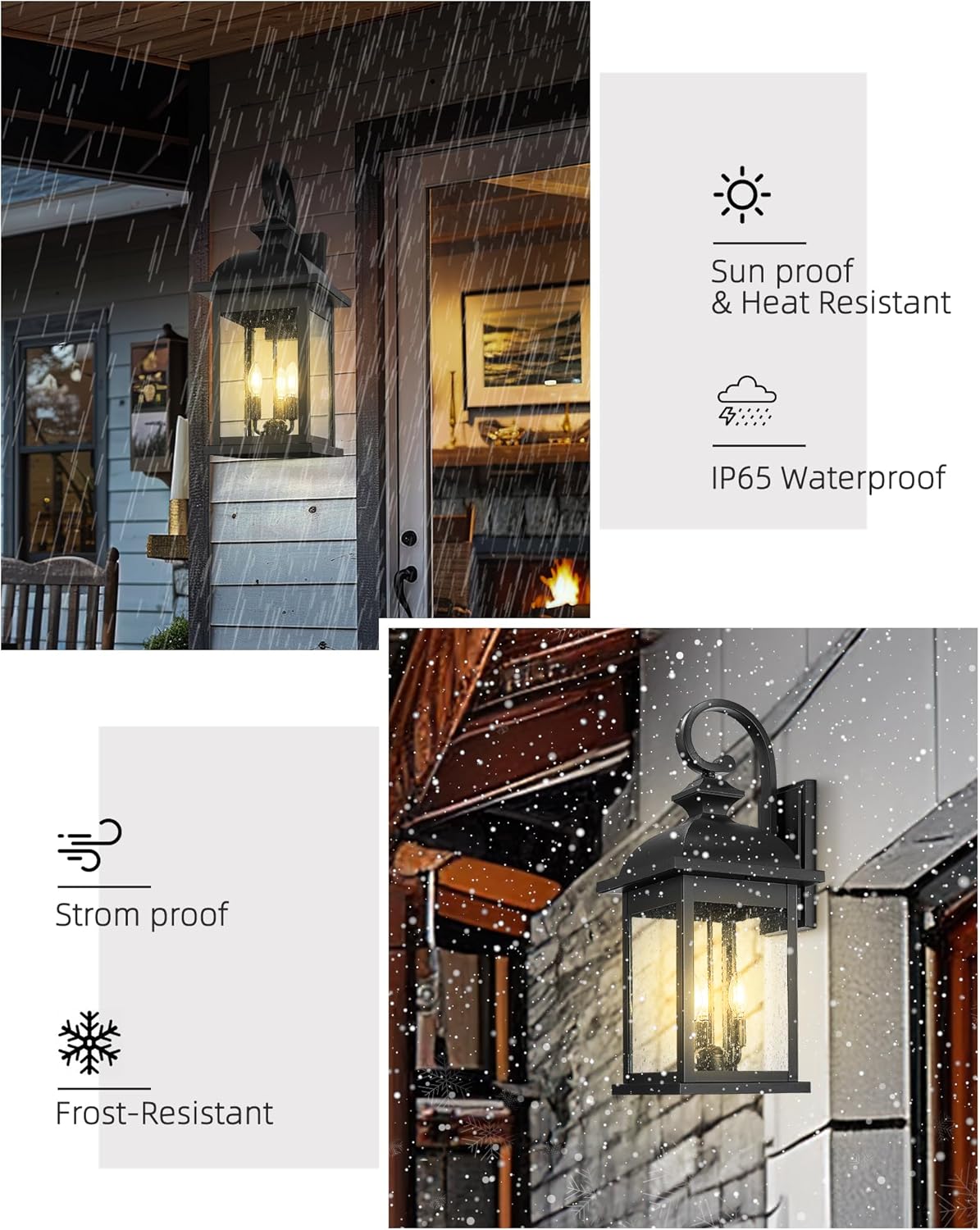 - Durable Materials: Crafted from high-quality aluminum with a rust-resistant finish, this outdoor light fixture is designed to withstand harsh weather conditions. The seeded glass adds a unique visual appeal, making it an ideal choice for exterior lighting fixtures.