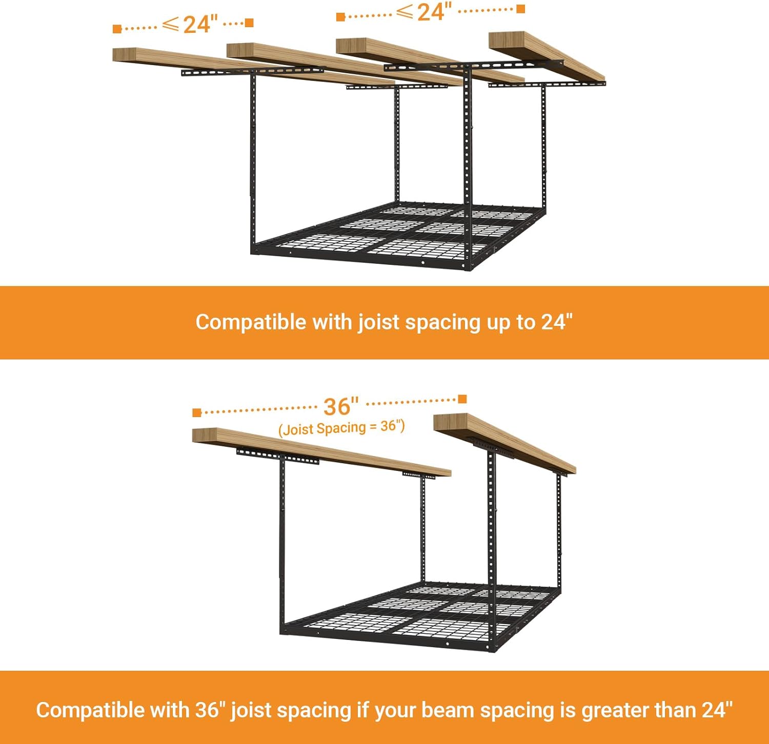 - Large Capacity: The 3x6ft overhead garage storage rack combines a weight-bearing capacity of 450 pounds, which provides a reliable storage solution.