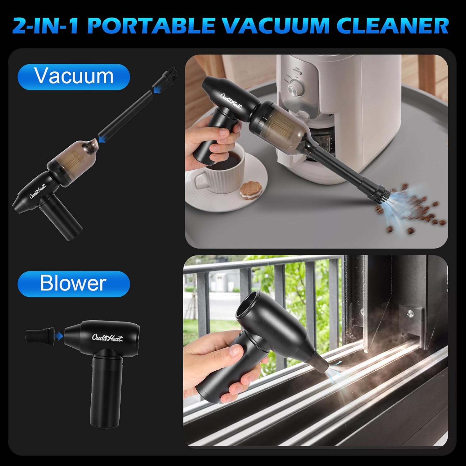 - Fully charge before first use!!【Powerful 2-in-1 Air Duster & Vacuum Cleaner】 Our product is an industrial-grade jet, which is not equipped with typical toy motor or turbo, delivering greater wind force and pressure compared to similar products. It combines a super-powerful high-speed air blower with a strong suction vacuum in one convenient device. The Cordless Mini Dust Blower/Pump includes 2 specialized nozzles to tackle different cleaning tasks with ease.
