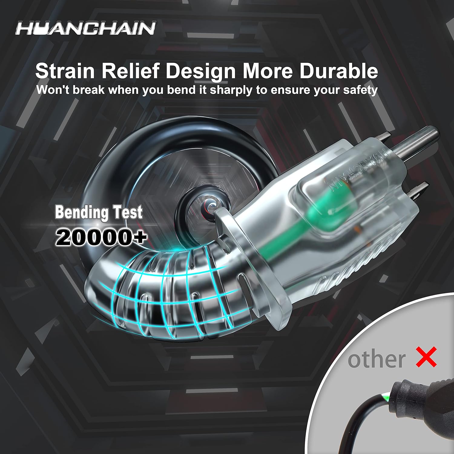 - Hook & Strain Relief Design: The plug and socket end have a strain relief design, which is not easy to break when bent and used; The socket has a hook design, which is easy to plug and unplug and can be hung in a humid environment, making it safer to use