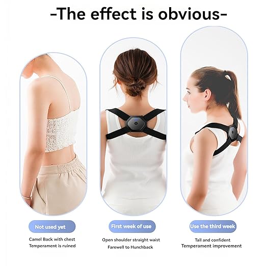 - Scientific correction, cultivating body memory: By wearing our Smart Posture Corrector for just 2 hours a day and consistently using it for 3 weeks, you can greatly improve your hunchback posture. It helps train your body to develop muscle memory, gradually correcting your posture, and allowing you to confidently raise your head and chest for a more elegant and confident appearance.