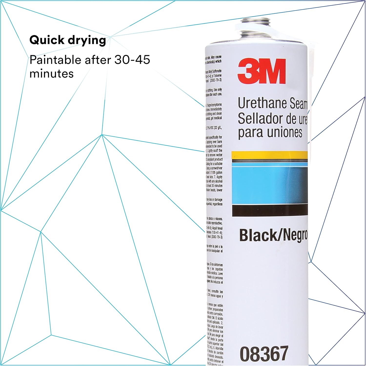 3M Urethane Seam Sealer, 08367, Black Color, High Solids, Permanently Flexible, 310 mL/10.5 fl oz Cartridge (Pack of 2)