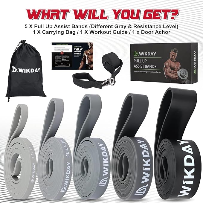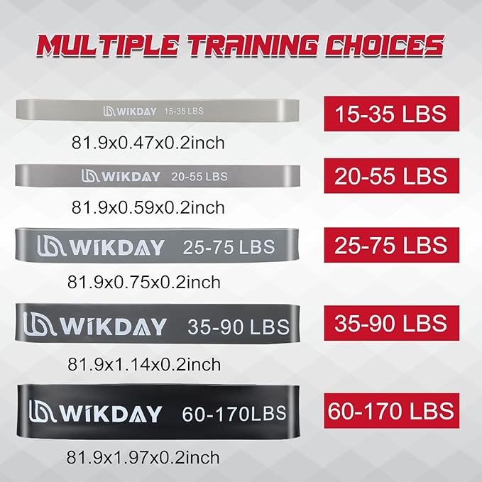 - β [Wide Applications]--This professional exercise bands comes with 5 different levels of resistance with a new door anchor. #1Gray(15-35 lbs), #2Gray(20-55 lbs), #3Gray(25-75 lbs), #4Gray(35-90 lbs), Black(60-170 lbs). They are very suitable for beginners, fitness enthusiasts, athletes and other people.