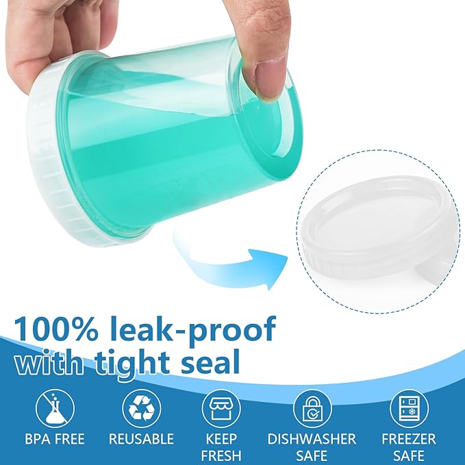 - 【Leakproof Assurance】: Bid farewell to the dreaded spill with our condiment containers with lids, featuring an exquisitely crafted threaded lid akin to a watertight cup. You'll get better leakproof protection if leaving some space between the liquid and the cap.This seal is the fortress that ensures your dressings, sauces, and condiments remain contained and fresh, giving you freedom from leaks whether you're at home, in the office, or on the move.