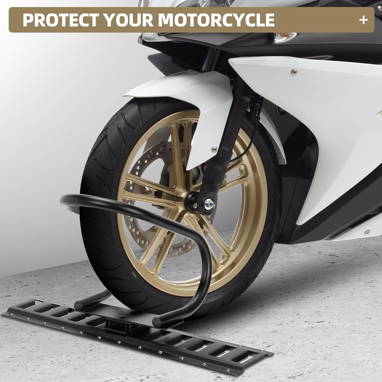 - Easy to Use: When it comes to securing your precious motorcycles in trailers or garages, trust our motorcycle trailer wheel chock to do the job. It holds bikes securely in place, providing added stability and safety. This front wheel chock is a reliable standalone support for your motorcycles, ensuring they remain firmly in place during transportation or storage.