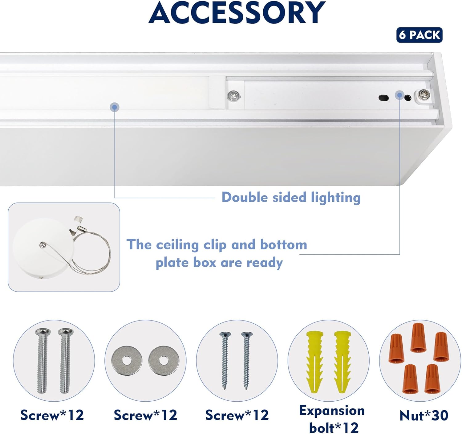 - 【Save 75% Energy】Built with high efficient SMD2835 LEDs, Our LED office linear light comes with high output at 6000 lumen with power at only 55W in total, replacing 150W old fluorescent light tube, saving 75% energy. AC100-277V/60Hz, 50,000 hours life span.