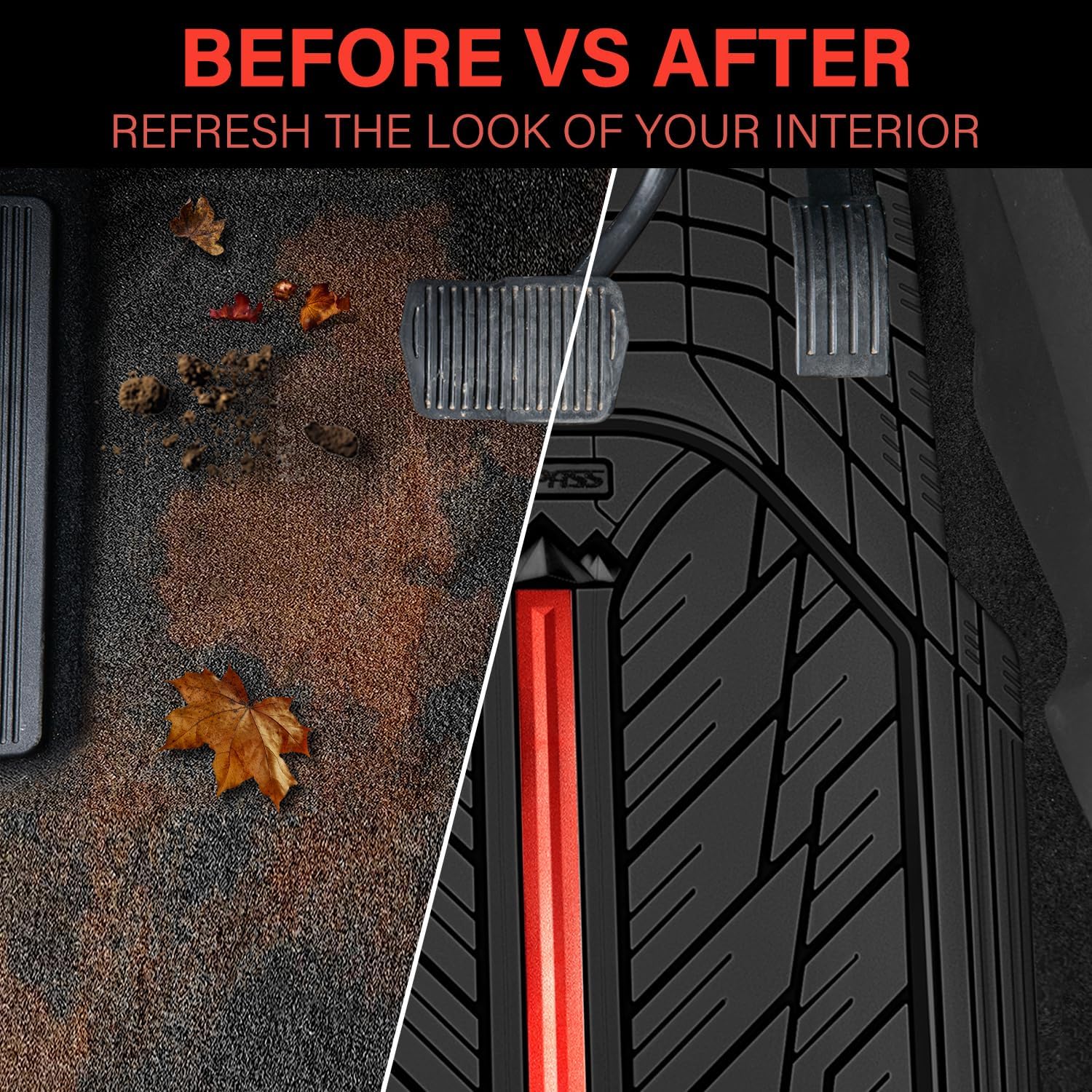 CAR PASS Metal Medium Rubber Floor Mats for car Heavy Duty car mats All Weather, Universal Trim to Fit for Truck SUV Vehicle Automotive Floor Mats, Waterproof car mats 4 Piece (Red Black)