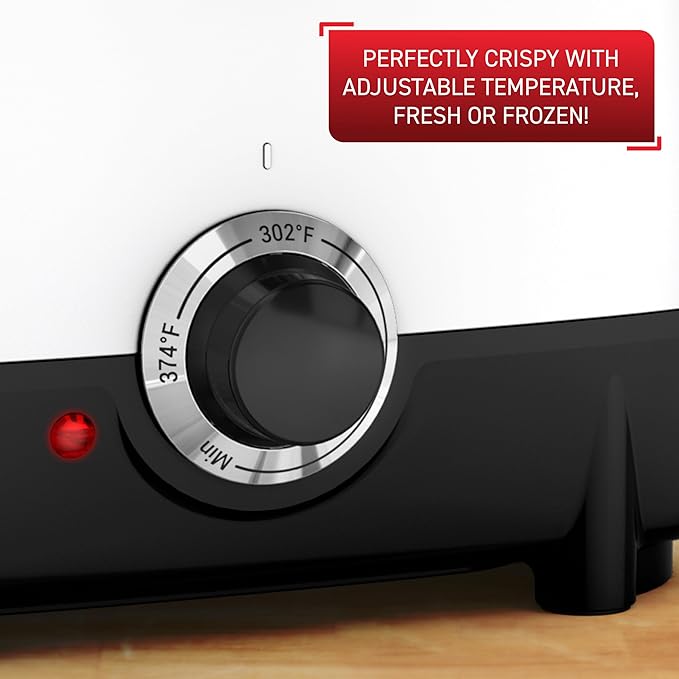 - PRECISION TEMPERATURE CONTROL: Easily adjustable thermostat (300°F to 375°F) ensures perfect frying for all recipes—unlike other fryers with fixed high temperatures that risk burning fresh foods or leaving them undercooked.