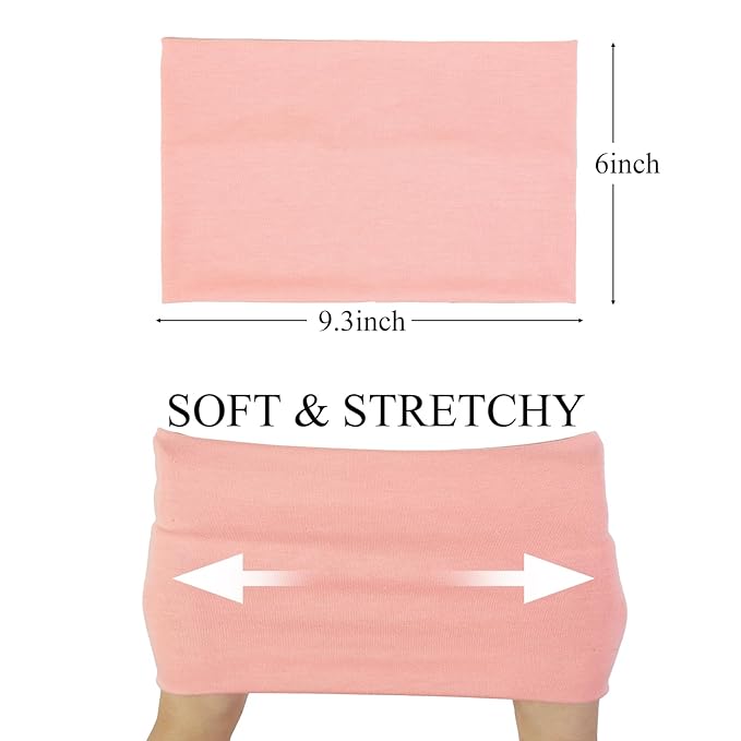 - 6’’ Wide Headbands for Women’s Hair large enough to scrunch into any size you like. You can either wear them fully wide or double them over for a thinner hair band that could potentially absorb more sweat if you're a sweater and/or using to work out. These extra wide head wraps for women would be a great solution for covering your ears while exercising outdoors and also keeping your ear buds in place.