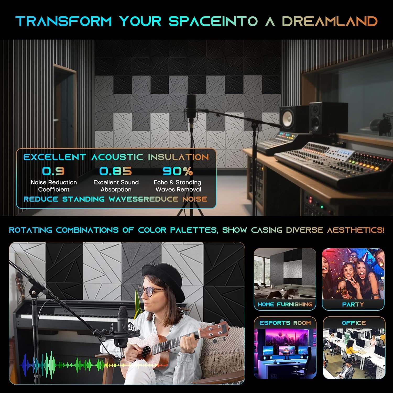 - 【Wide Range of Uses】: The elegant and generous lines of the acoustic wall panels not only enhance the visual effect of the space, but we also provide a variety of color options, allowing you to create a unique space atmosphere through clever combinations, perfectly matching your various decoration styles. Noise cancelling wall panels is widely used in various scenarios such as musical instrument rooms, podcasts, recording studios, piano rooms, cinemas, living rooms, bedrooms, offices, etc.