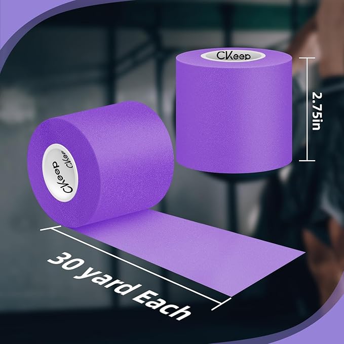 CKeep Pre Wrap Athletic, 3 Rolls Purple Prewrap Athletic Tape, Foam Underwrap Sports Wrap for Hair