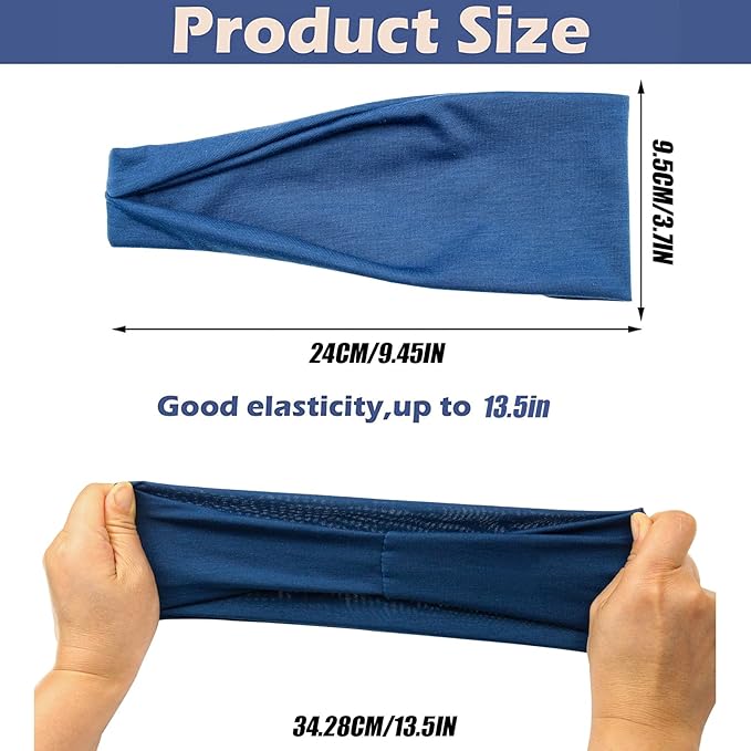 - Soft material-Headbands for women non slip made of high quality polyester fibre. Circumference is from 18-23.5 inch, wide 3.8", length 9.25", fit most of women's head. Womens headbands very stretchy, light weight, breathable, softer than cotton and microfiber, perfect for women who like a soft comfortable fit.