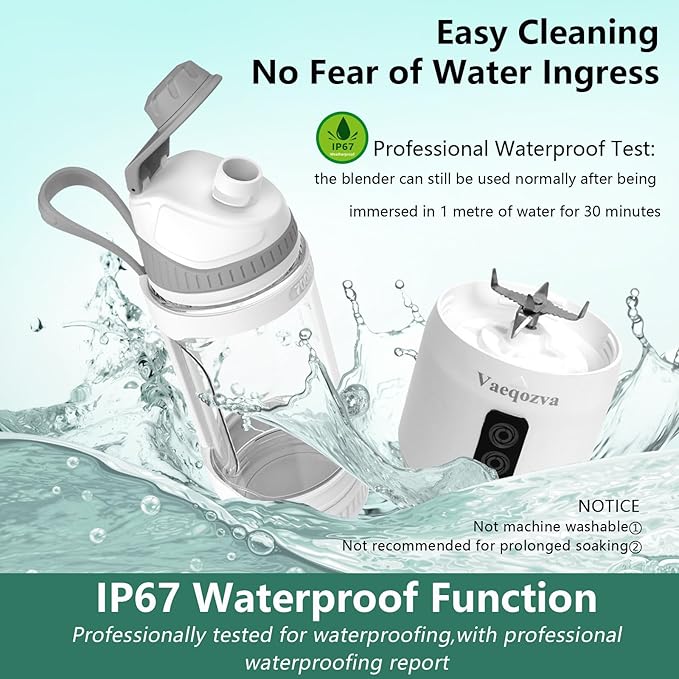 - WATERPROOF & EASY TO CLEAN: The Vaeqozva small smoothie blender is IP67 waterproof,double-click to turn on the self-cleaning mode,or just rinse mini blender with water,which makes it very easy to clean. Tips:Don't immerse the portable blender in water