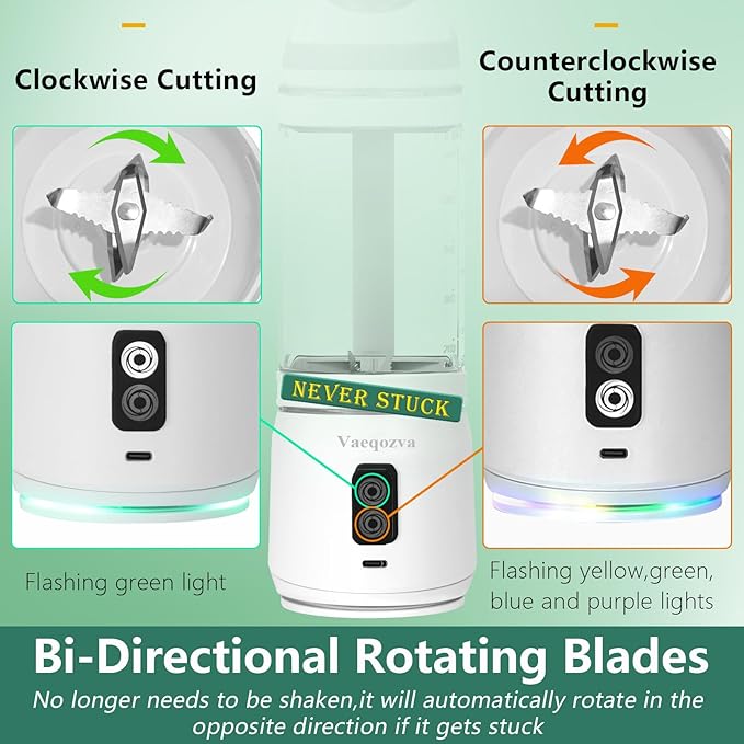 - SMART PREVENT JAMMING: The first portable smoothie blender with blades that rotate in both directions,the blending will be more powerful and effective,you will get more delicate smoothie shakes than ever before,don't worry about the blades getting jammed