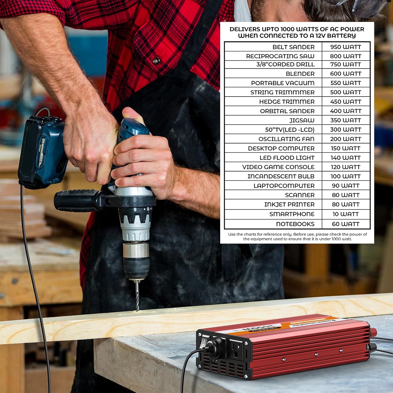 - 【Safety Multi-Protection】1000W 12V Automobile Inverter Overload / Short Circuit / Over heat / Reverse Polarity / Under or Over Voltage protections.Applies the technology of crashworthiness, robust, as well as good electrical insulation auto inverter