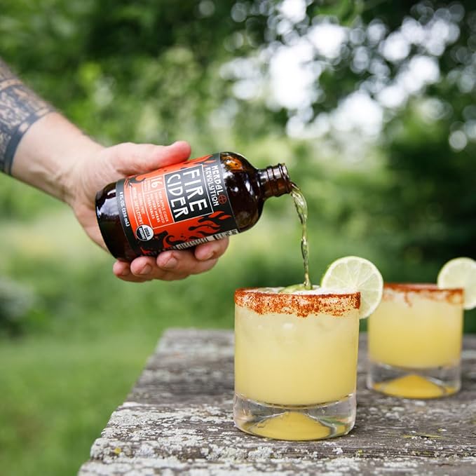 Herbal Revolution Fire Cider Apple Cider Vinegar - Certified Organic Non-GMO ACV Infused with Ginger, Horseradish, Hot Peppers, Honey, and More - Made Using Regenerative Farming Practices 16 Oz