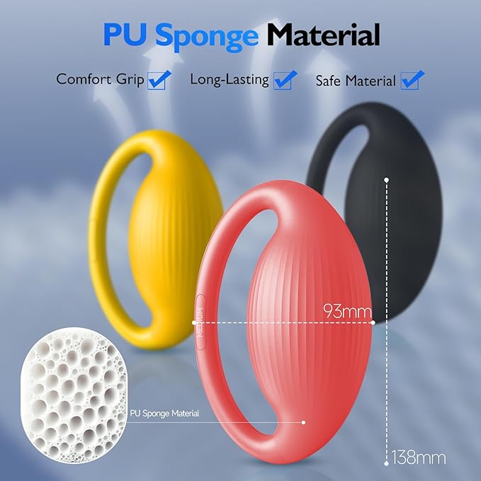 - ๐ฃ๐ฟ๐ฒ๐บ๐ถ๐๐บ ๐ฃ๐จ ๐ฆ๐ฝ๐ผ๐ป๐ด๐ฒ ๐ ๐ฎ๐๐ฒ๐ฟ๐ถ๐ฎ๐น & ๐๐ฟ๐ด๐ผ๐ป๐ผ๐บ๐ถ๐ฐ ๐๐ผ๐บ๐ณ๐ผ๐ฟ๐: Crafted from high-quality PU sponge, our squeeze balls for hand therapy offer a soft and comfortable grip with high resilience, maintaining their shape even after prolonged use. The ergonomic design fits the natural contours of your hand, minimizing discomfort during long sessions.