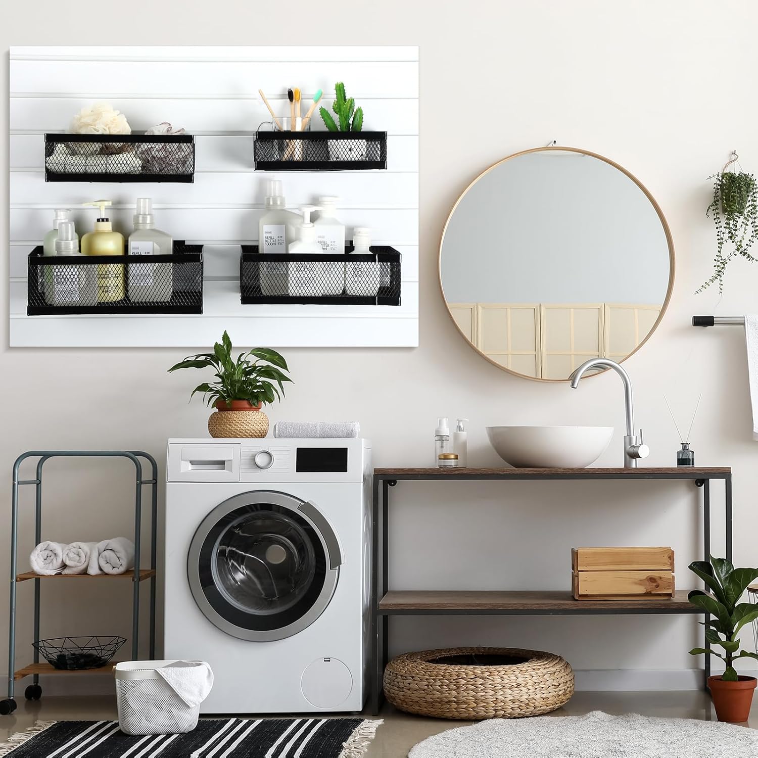 - Nice Organization Tool: designed for organization, these slatwall panel baskets provide different solutions for various items storage; They are easy to install, can hold a decent weight, and consequently, they offer an efficient organization system; The baskets' durable and sturdy construction, coupled with their artistic craftsmanship, ensures that they do not deform easily, fit for home, office, shops, and stores alike
