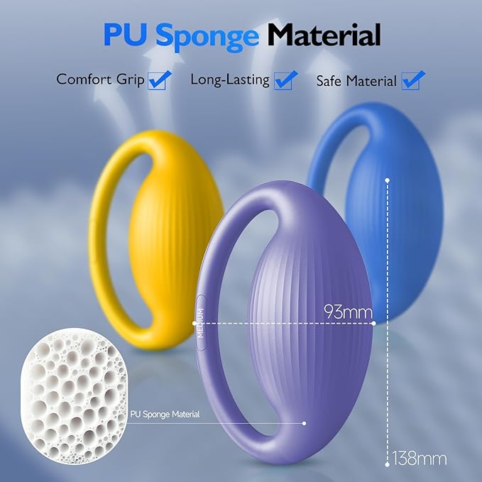 - ๐ฃ๐ฟ๐ฒ๐บ๐ถ๐๐บ ๐ฃ๐จ ๐ฆ๐ฝ๐ผ๐ป๐ด๐ฒ ๐ ๐ฎ๐๐ฒ๐ฟ๐ถ๐ฎ๐น & ๐๐ฟ๐ด๐ผ๐ป๐ผ๐บ๐ถ๐ฐ ๐๐ผ๐บ๐ณ๐ผ๐ฟ๐: Crafted from high-quality PU sponge, our squeeze balls for hand therapy offer a soft and comfortable grip with high resilience, maintaining their shape even after prolonged use. The ergonomic design fits the natural contours of your hand, minimizing discomfort during long sessions.
