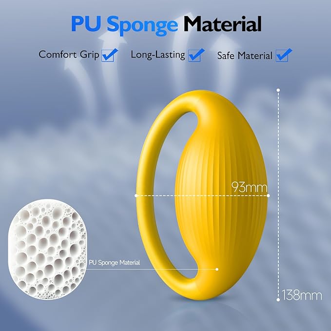 - ๐ฃ๐ฟ๐ฒ๐บ๐ถ๐๐บ ๐ฃ๐จ ๐ฆ๐ฝ๐ผ๐ป๐ด๐ฒ ๐ ๐ฎ๐๐ฒ๐ฟ๐ถ๐ฎ๐น & ๐๐ฟ๐ด๐ผ๐ป๐ผ๐บ๐ถ๐ฐ ๐๐ผ๐บ๐ณ๐ผ๐ฟ๐: Crafted from high-quality PU sponge, our squeeze balls for hand therapy offer a soft and comfortable grip with high resilience, maintaining their shape even after prolonged use. The ergonomic design fits the natural contours of your hand, minimizing discomfort during long sessions.