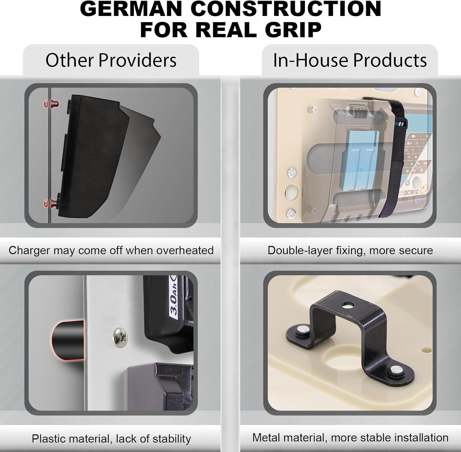 - Easy Wall Installation β No more lost batteries under tool piles!Designed for Makita battery storage, reinforced nylon slots with anti-tip design secure DC18RC charger vertically. Includes complete installation accessories. Workshop-tough yet Garage-friendly.