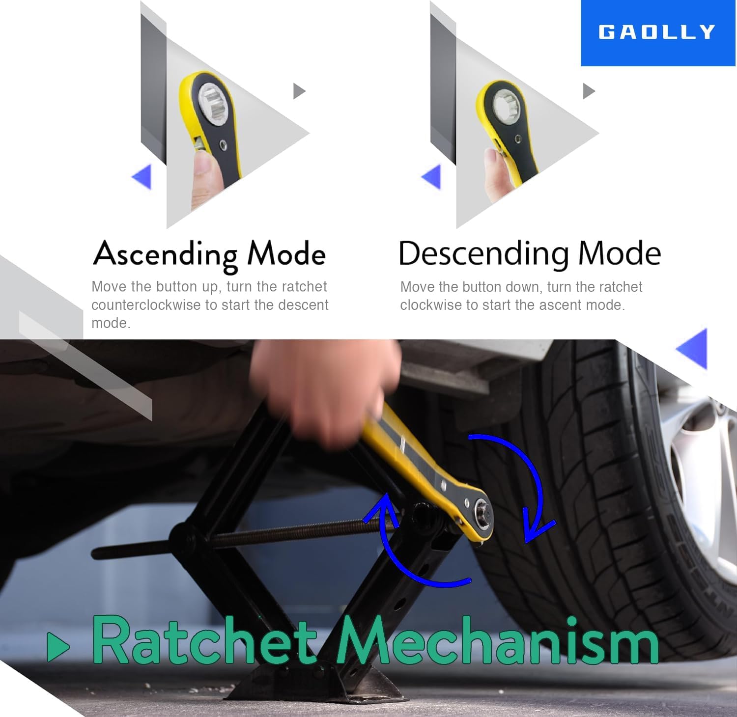 - EASY TO USE - The scissor jack has a simple and easy-to-operate design, while the lug wrench and tire changing kit are designed to provide a comfortable grip and maximum leverage.For any emergency, this Car Jack Kit will help you change your tire fast and easy;