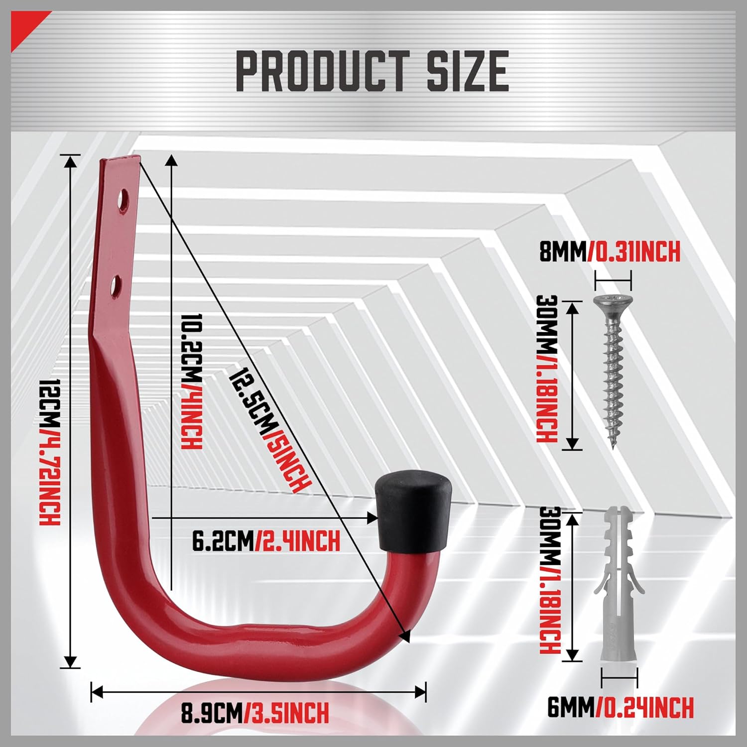 • 6 pack garage storage hooks with 12pcs screws and anchors, hook size: 4.72in x 3.5in(L x W).