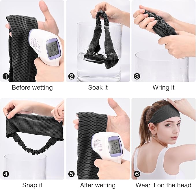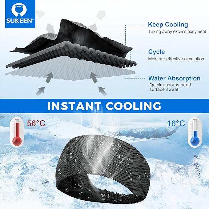- Instant Cooling: Sukeen cooling headband is soft and breathable, made of cooling fabric, just wet the sweatband with water, wring it out and wearing it, its cooling effect can keep your forehead cool and can last up to hours, you can activate the cooling repeatedly