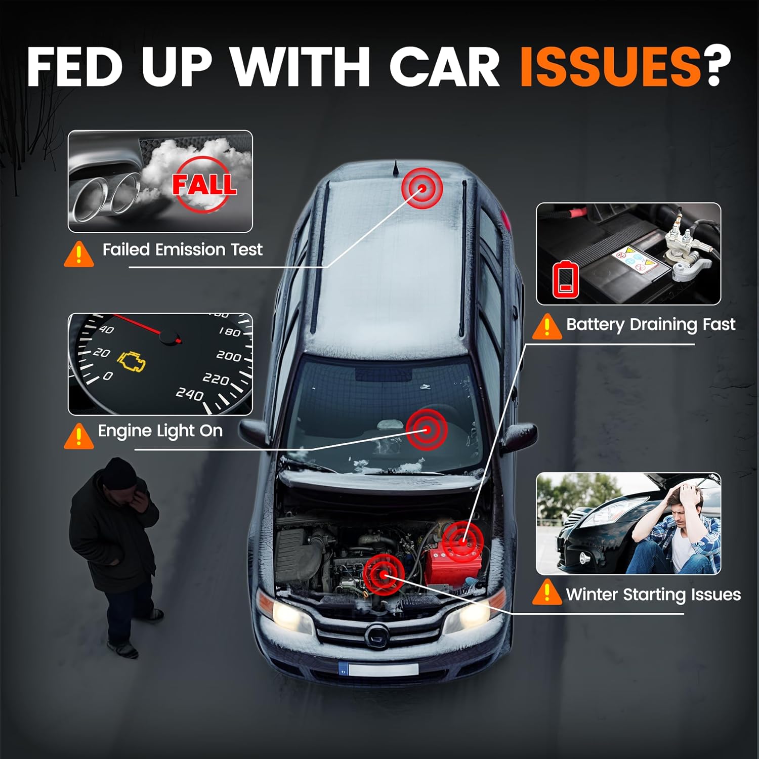 - Multi-Functional But Easy To Use: Plug & play—just simply plug into the OBD port, the 2.8" color screen instantly displays data with day/night modes for perfect visibility. Car scanner diagnostic tool supports 16 languages for global users. Features upgraded insulated clamps and silicone protective case for full protection
