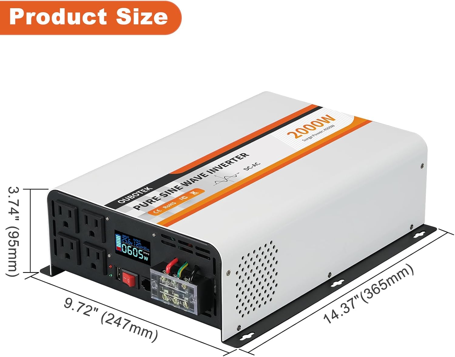 - POWERFUL 2000W PURE SINE WAVE INVERTER: The OUBOTEK inverter provides 2000W continuous and 4000W peak power, converting DC 24V to AC 120V. It delivers clean, efficient pure sine wave power, ideal for sensitive electronics and appliances