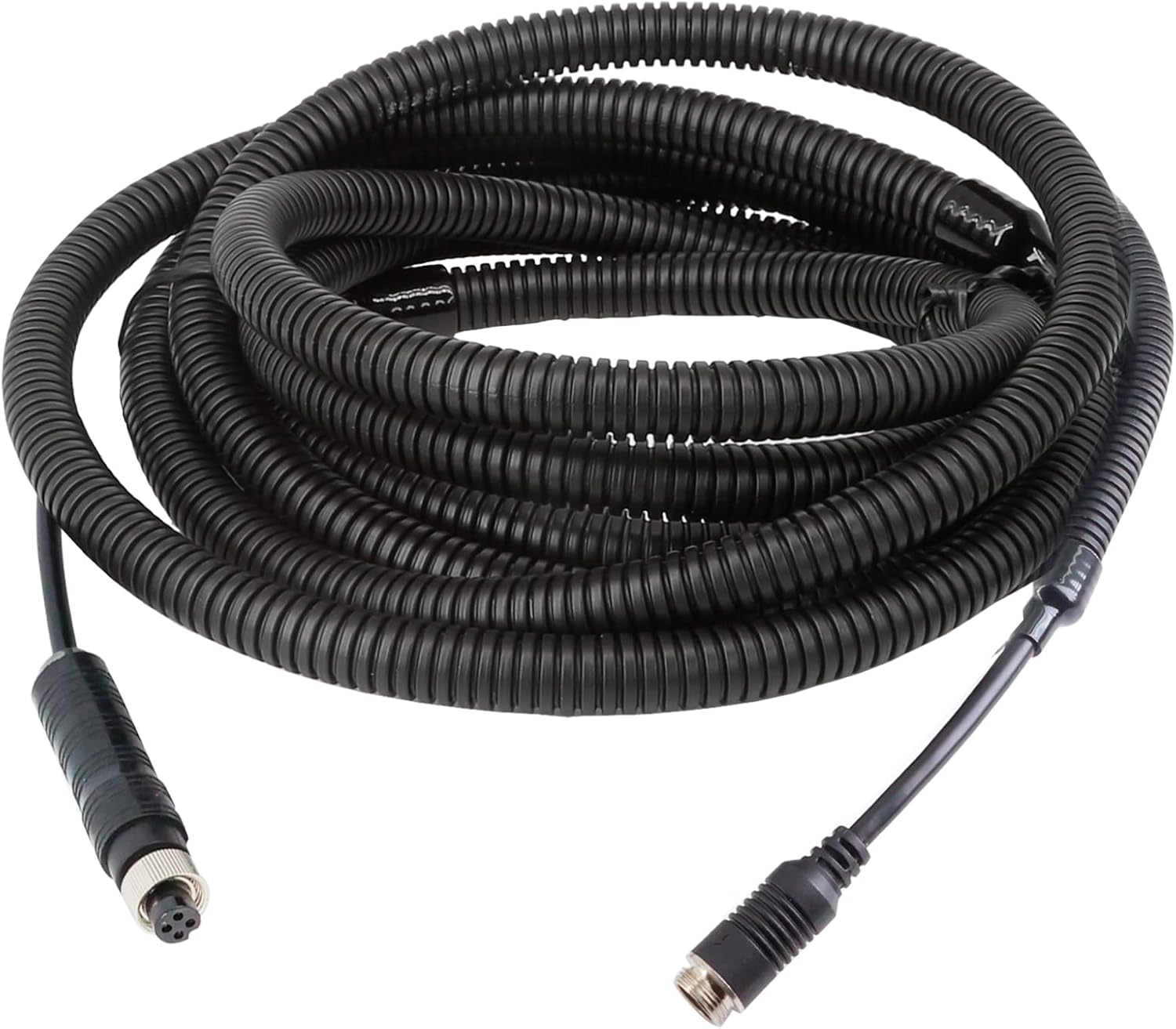 4 Pin Backup Camera Cable with Corrugated Tube Cover, 4 Pin Aviation Extension Cord, Weatherproof, Compatible with Rearview Camera Systems, Radar DVRs, CCTV Security Systems(10FT/3M)