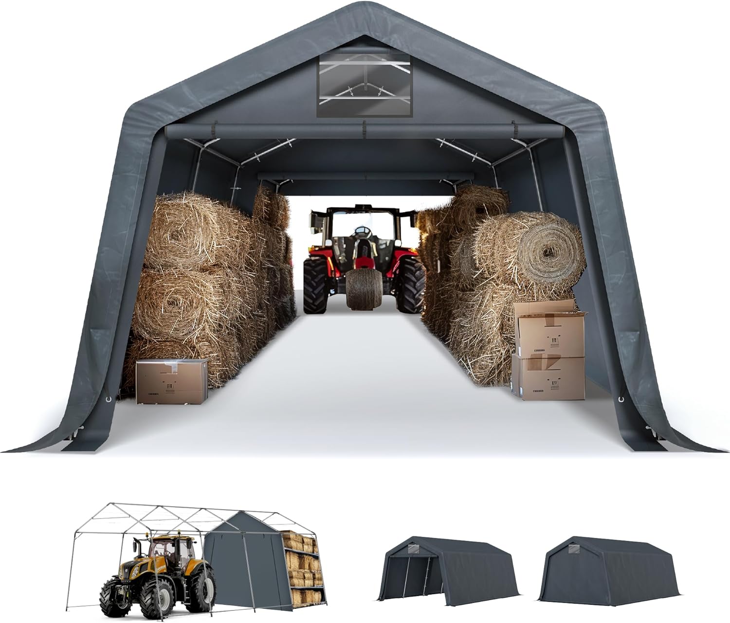 - Roll Up Doors: The car canopy is equipped with rolling shutter doors, which can effectively protect your belongings from wind, sun, and rain. There is a zipper on both sides, providing better privacy space. Visible window on the door provide good air flow and indoor light