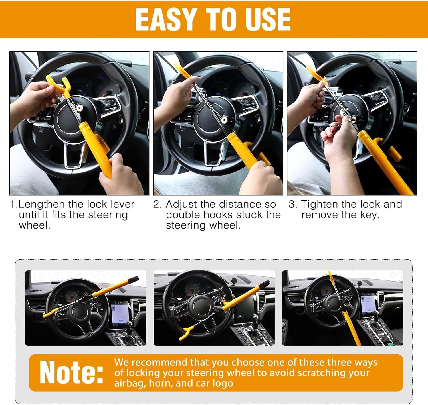 - Enhanced Security for All Vehicle Models: Our steering wheel lock features an extended handle suitable for heavy trucks, SUVs, vans, lorries, and more.