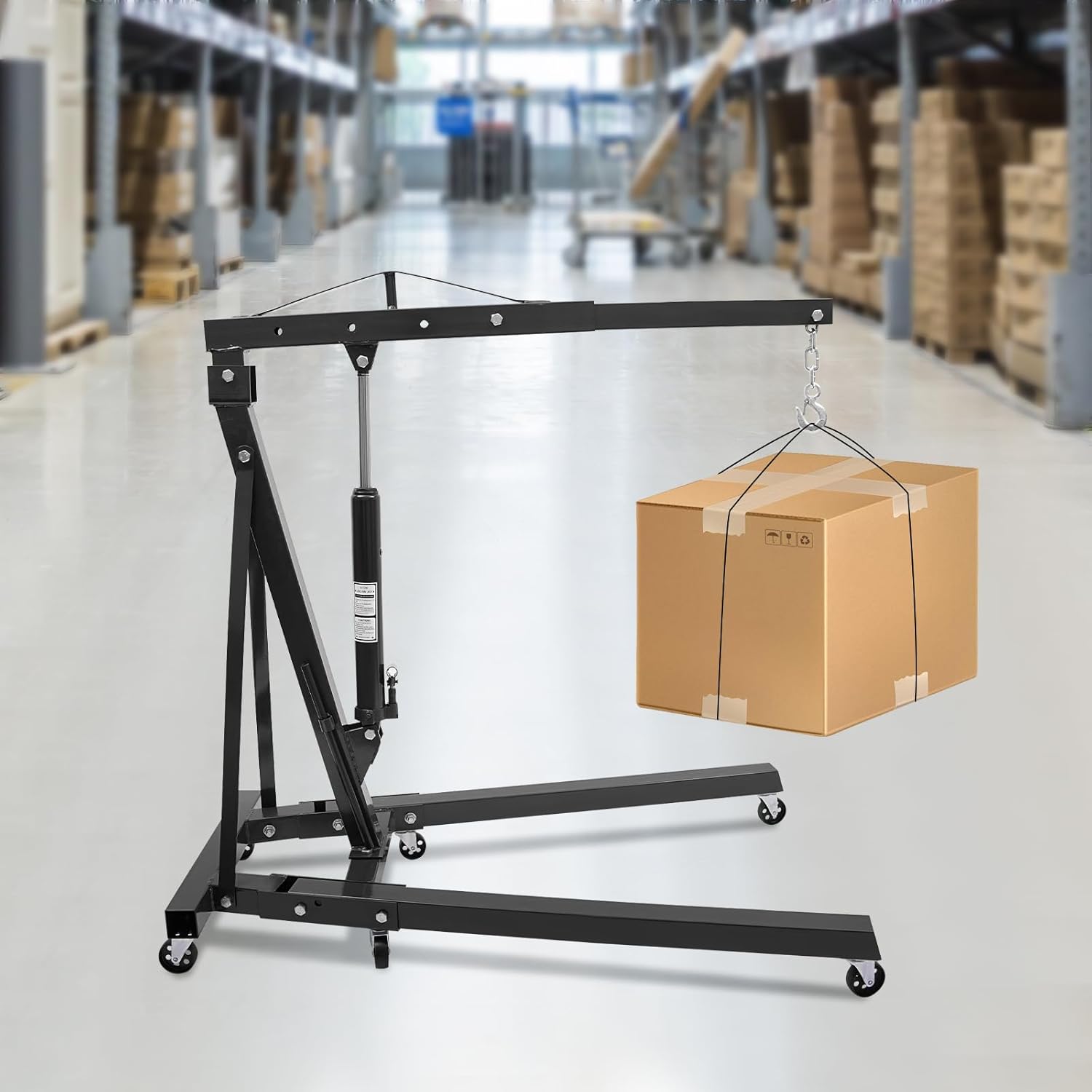 Folding Engine Crane 1 Ton Folding Engine Hoist 2200lbs Hydraulic Crane with 6 Iron Caster Wheels for Garage, Workshop (Black)