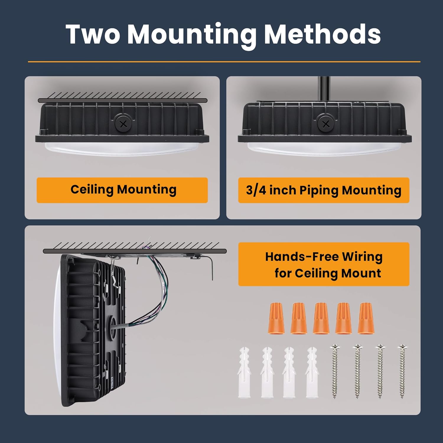 - Energy Efficiency and Brightness Control: Enjoy LED Canopy Ceiling Light benefits of 0-10V dimmability & selectable wattage & 3CCT, providing precise control over brightness while maximizing energy efficiency.